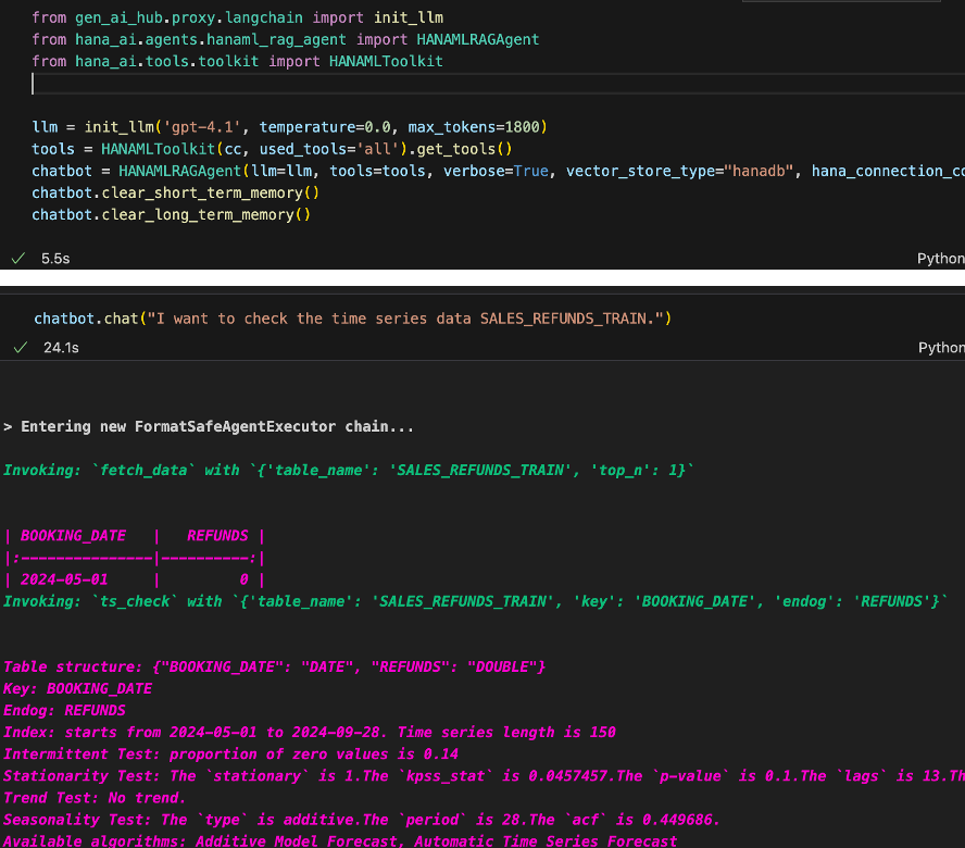 chatbot = HANAMLRAGAgent(llm=llm, tools=tools, verbose=True, vector_store_type="hanadb")